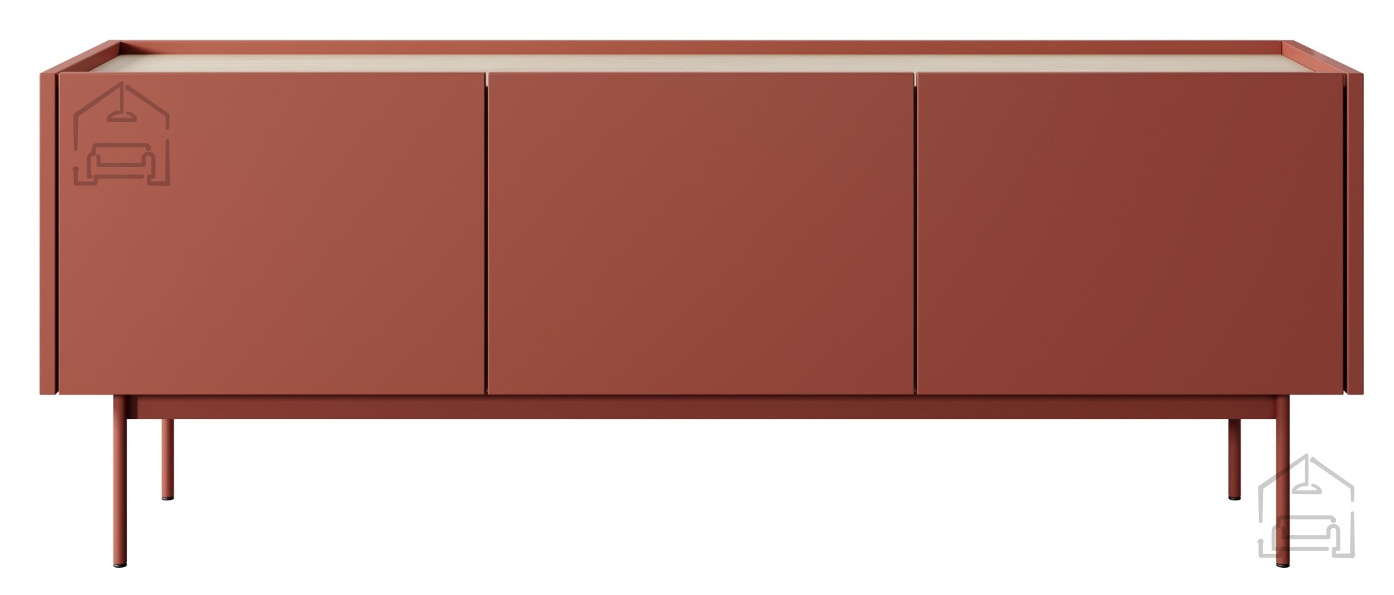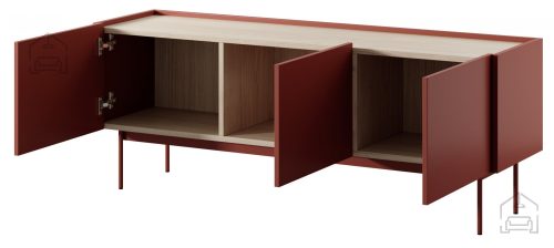 DescriptionMaterial: laminirana iverna plošča 16 mm Barva: Rdeča/Linea hrast Noge: Kovinski Tiho zapiranje