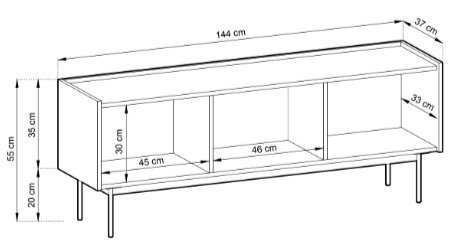 TV komoda Color RTV-144 je tako funkcionalna kot tudi privlačna izbira za vaš dnevni prostor, ki bo ustvarila urejen in sodoben videz ter omogočila prijetno izkušnjo gledanja televizije in uporabe drugih avdiovizualnih naprav.