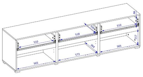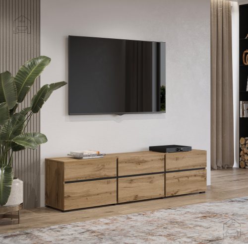 - Funkcionalnost in organizacija: TV komoda je opremljena z več predali in policami, ki omogočajo urejeno shranjevanje vaših stvari. Tako boste lahko vedno ohranili red in preglednost v svojem dnevnem prostoru.