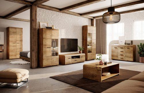 Omara Torin je prilagodljiva in jo lahko postavite samostojno ali v kombinaciji s TV omarico, visoko vitrino ali garderobno omaro. To vam omogoča, da ustvarite čudovito in funkcionalno ureditev dnevne sobe po svojih željah.