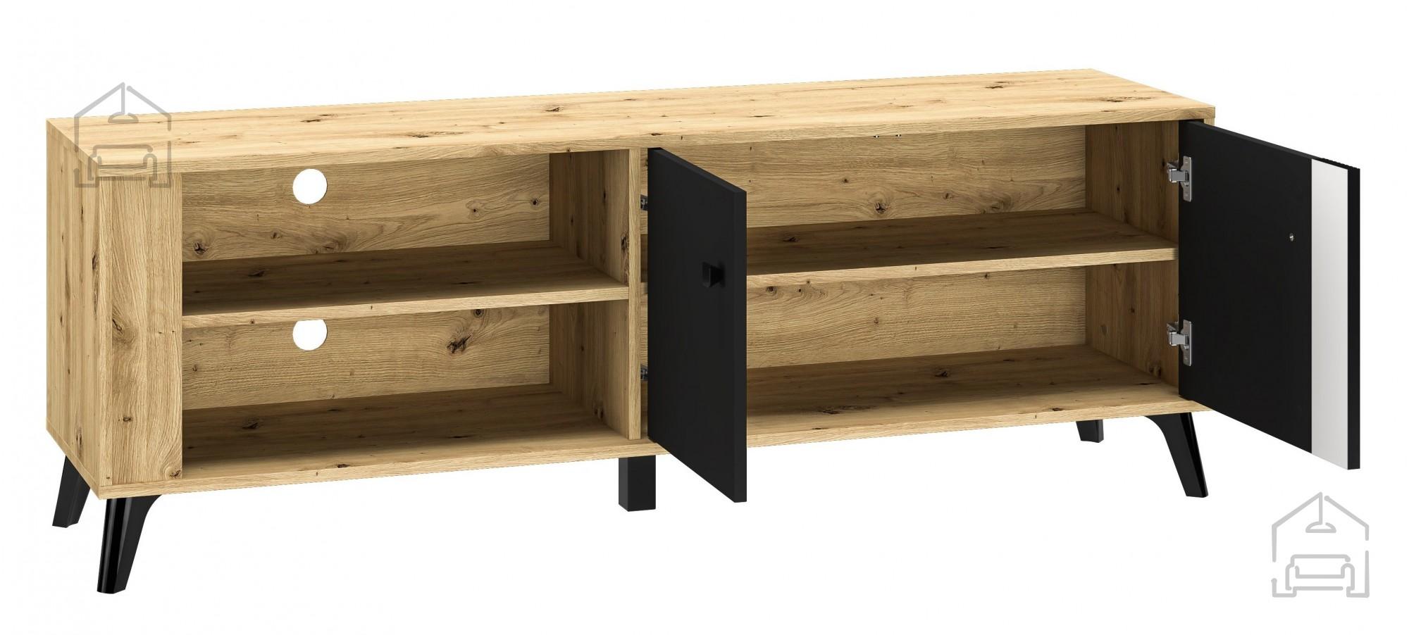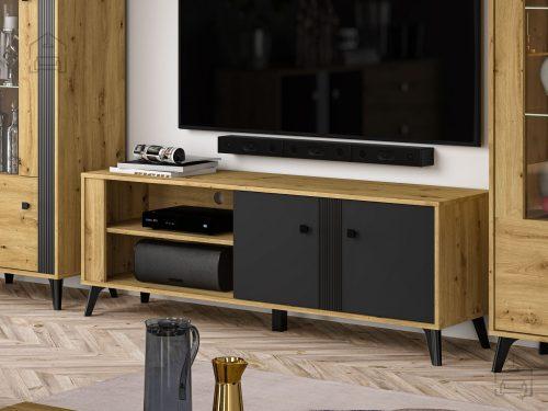 Barva: Artisan hrast/Črna sijaj/Črna mat Dimenzije: 1550x540x400 mm Moderno oblikovana dnevna soba Elizabeth je izdelana v kombinaciji dveh barv: Artisan hrast in črne | Material: Iveral in MDF
