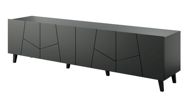 Elegantna TV komoda Etna s čistimi linijami in modernim dizajnom, primerna za dnevno sobo ali spalnico. Sprednja stran s subtilnim vzorcem doda pridih prefinjenosti, notranje police pa ponujajo veliko prostora za shranjevanje in razporeditev vaših predmetov.
