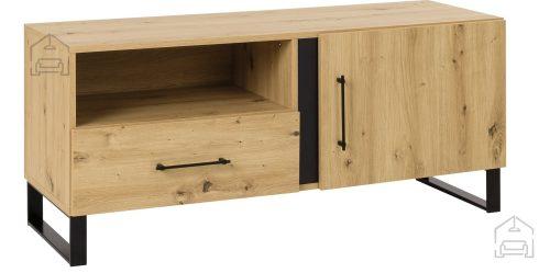 Moderna TV komoda Francis v artisan hrast/črni barvi ima polico za shranjevanje in elektronsko opremo ter predal in vrata. TV komoda Francis je odličen dodatek čistih modernih linij za vaš dom. TV komoda Francis ima veliko prostora za shranjevanje, da bo vaša hiša pospravljena in dobro organizirana. V kombinaciji z elementi pohištva iz kolekcije Francis boste povečali uporabno površino. Celotno kolekcijo odlikuje moderen videz in privlačne cene.