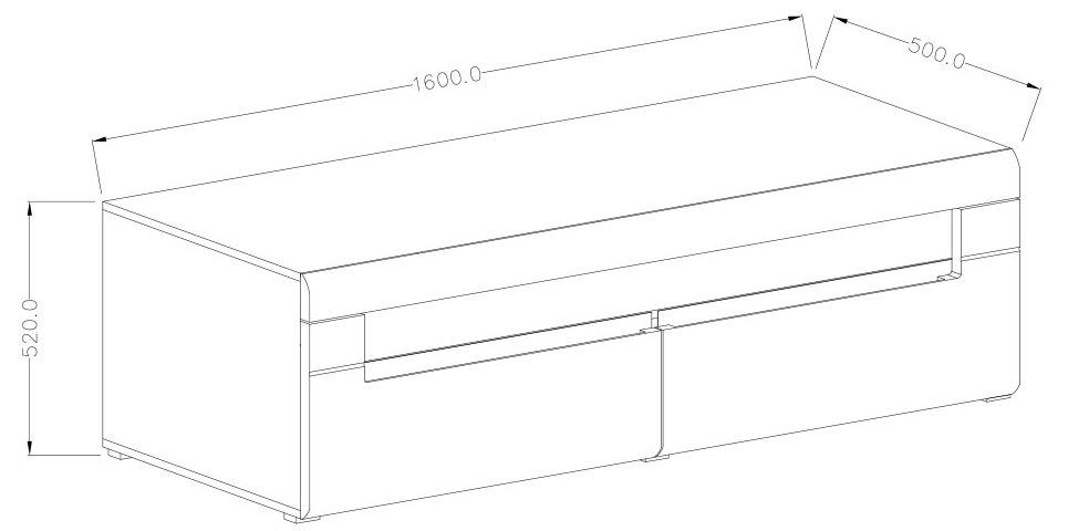 Dimenzije: 1600x520x500 mm Kolekcija pohištva Hektor predstavlja sodobno zasnovano pohištvo za tiste ki cenijo izjemen dizajn. Material: visokokakovosten laminiran bel profil in MDF plošča.