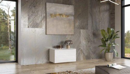 Dimenzije: 798x499x478 mm Skrivnost elegance je v preprostosti - v skladu s to idejo kolekcija Helio pokaže, kako preprosta, minimalistična oblika pohištva ustreza sodobni notranjosti. Sijaj stekla in nežen krom, ki je zaključen z vodoravnimi linijami ročajev, dajejo notranjosti edinstven, eleganten značaj. Kolekcija je oblikovana v treh barvnih različicah: univerzalna in brezčasna bela - popolnoma predstavljena s kromiranimi zaključki, trenutno modna siva - v umirjenem srednjem odtenku ali originalna črna. | Material: Iveral in MDF in steklo