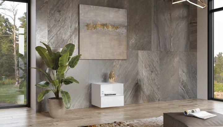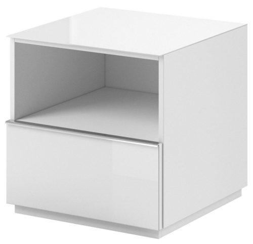 Dimenzije: 498x499x478 mm Skrivnost elegance je v preprostosti - v skladu s to idejo kolekcija Helio pokaže, kako preprosta, minimalistična oblika pohištva ustreza sodobni notranjosti. Sijaj stekla in nežen krom, ki je zaključen z vodoravnimi linijami ročajev, dajejo notranjosti edinstven, eleganten značaj. Kolekcija je oblikovana v treh barvnih različicah: univerzalna in brezčasna bela - popolnoma predstavljena s kromiranimi zaključki, trenutno modna siva - v umirjenem srednjem odtenku ali originalna črna. | Material: Iveral in MDF