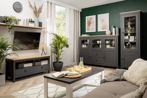 • Gladke sprednje strani v grafit barvi, vrh v barvi artisan hrasta in okrogli ročaji tvorijo diskreten set, ki omogoča eksperimentiranje z različnimi teksturami, oblikami in odtenki.