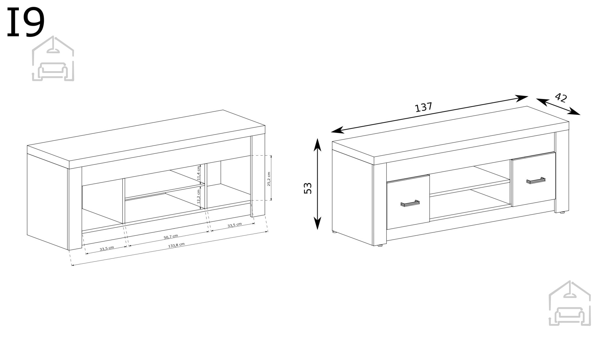 LED osvetlitev: da, za doplačiloDimenzije: 1370x530x420 mm Kolekcija pohištvenih elemenov za dnevno sobo in jedilnico Indianapolis je predstavljena v dveh barvah - white kraft in dark ash. Predstavlja kvalitetno izdelano pohištva v modernem slogu z vintage pridihom. | Material: Iveral in MDF