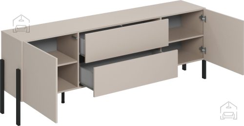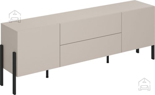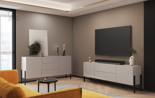 Čista linija in minimalističen dizajn TV komode Jukon prinašata občutek elegance in urejenosti v vaš dom. Kašmir površina odseva svetlobo in ustvarja občutek večje prostornosti, kar je še posebej primerno za manjše prostore.