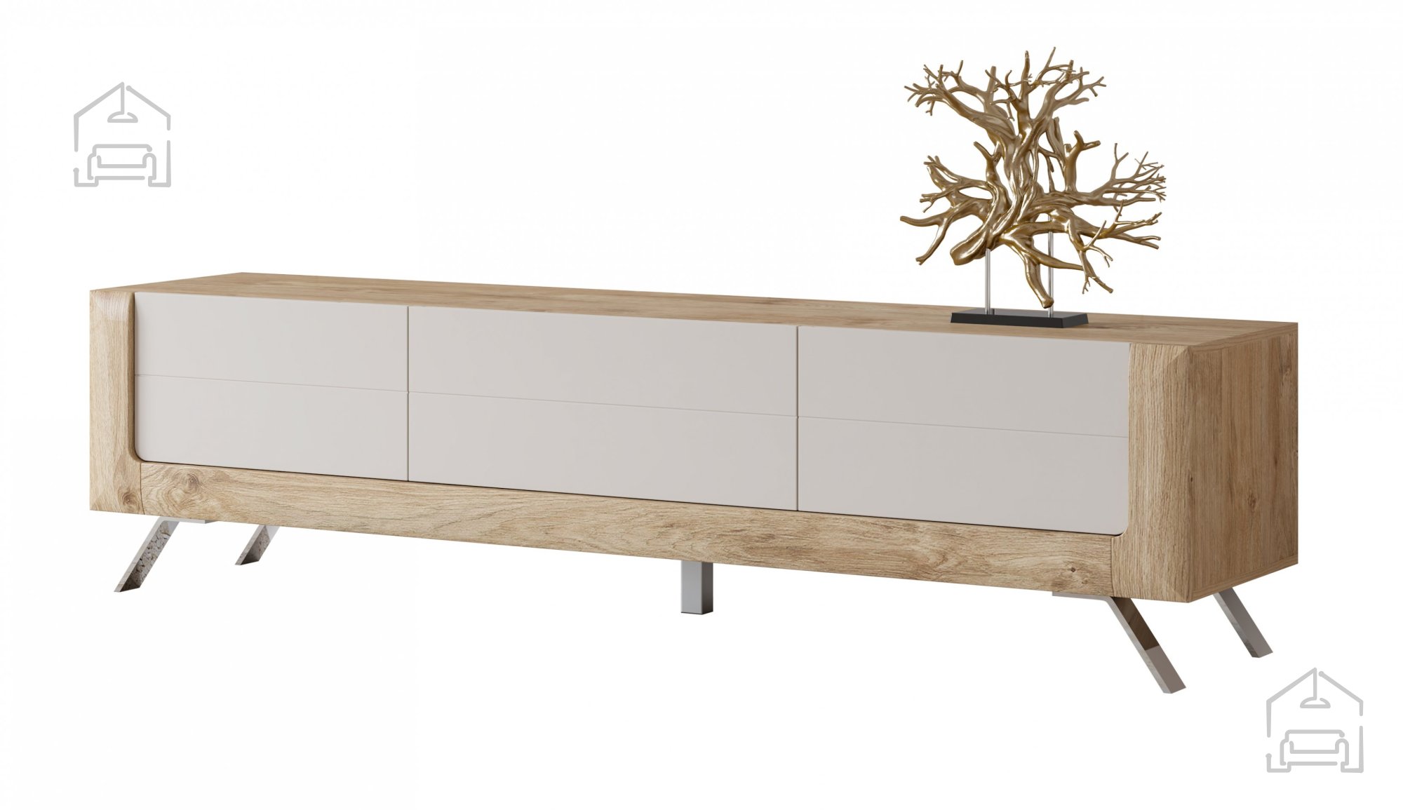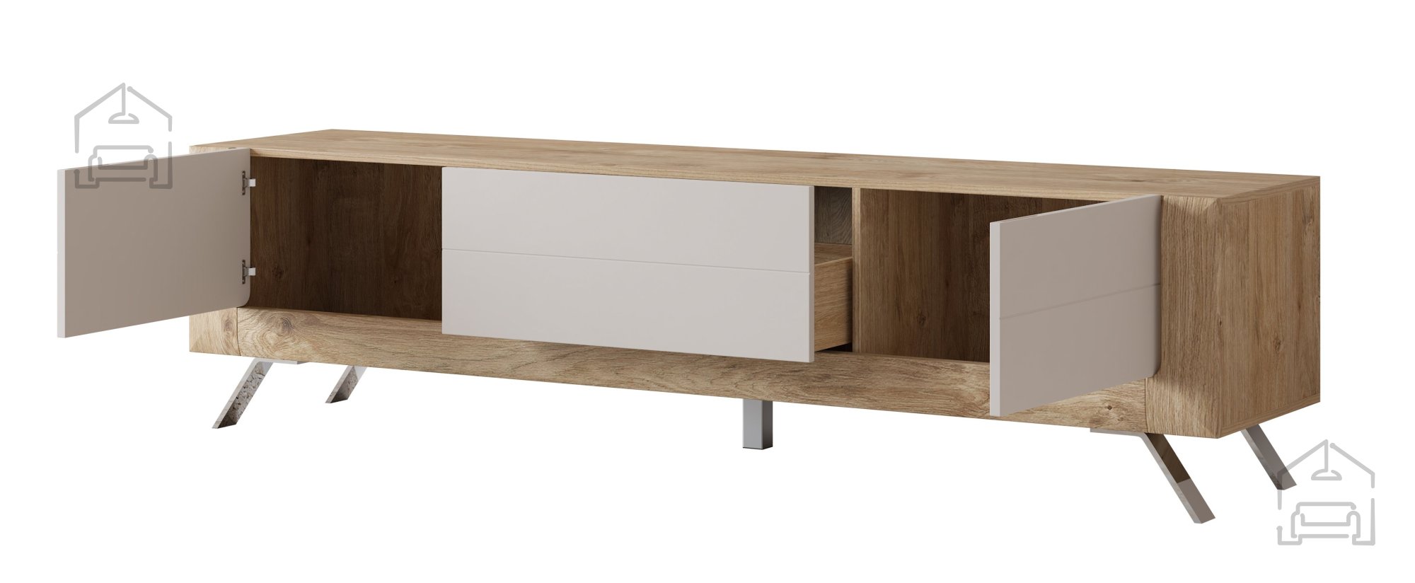 S svojim sodobnim dizajnom in prefinjeno barvno paleto bo TV komoda Kasai postala osrednji del vaše dnevne sobe. Kombinacija gold harbor hrasta in popolnega dotika kašmirja ustvarja harmonično in vabljivo vzdušje.
