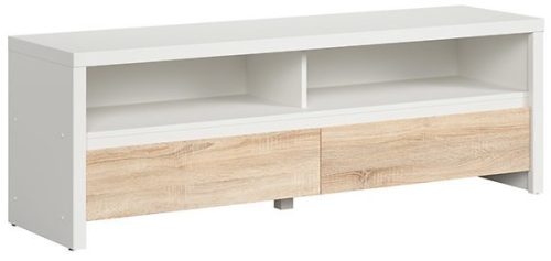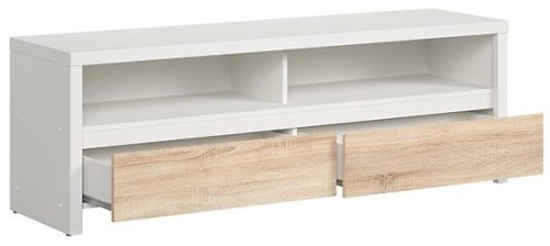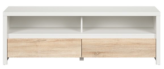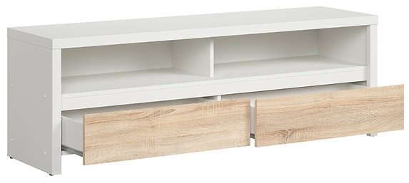 Poleg zaprtih predalov ima komoda tudi dva odprta predala, ki so idealni za shranjevanje elektronske opreme, kot so DVD predvajalniki, igralne konzole ali sprejemniki.