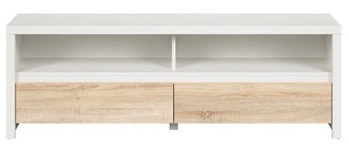 Komoda ima dva prostorna predala, ki ponujata dovolj prostora za shranjevanje različnih predmetov, vključno z medijsko opremo, knjigami, DVD-ji in drugimi predmeti.