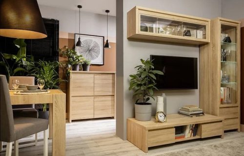 Izjemen vintage izgled, ki ga ustvari barva lefkas hrasta z rahlimi detajlnimi poudarki črne, bo oplemenitil prav vsako dnevno sobo. Dnevna soba Baltica – lefkas, za katero je poskrbel poljski proizvajalec notranjega pohištva ML Meble, je tako zelo priljubljen izbor uporabnikov naše spletne strani zaradi svojega mogočnega, robustnega, a elegantnega izgleda v enem. Še posebej bo do izraza prišla v večjih (tudi zaradi precejšnjega števila različnih elementov) in bolj svetlih dnevnih prostorih. V kolikor ocenjujete, da je barva lefkas hrasta (lefkas oak) za vaš dnevni prostor pretemna, lahko posežete po svetlejšem odtenku, in sicer boste to dnevno sobo našli v iskalniku pod imenom Dnevna soba Baltica.