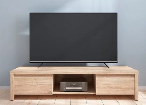 Poleg zaprtih predalov ima komoda tudi dva odprta predala, ki so idealni za shranjevanje elektronske opreme, kot so DVD predvajalniki, igralne konzole ali sprejemniki.