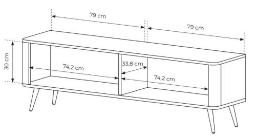 - 1x RTV omarica z 2 odprtima in 1 navadnim predalom na sredini. Dimenzije: 37x180x45 cm.