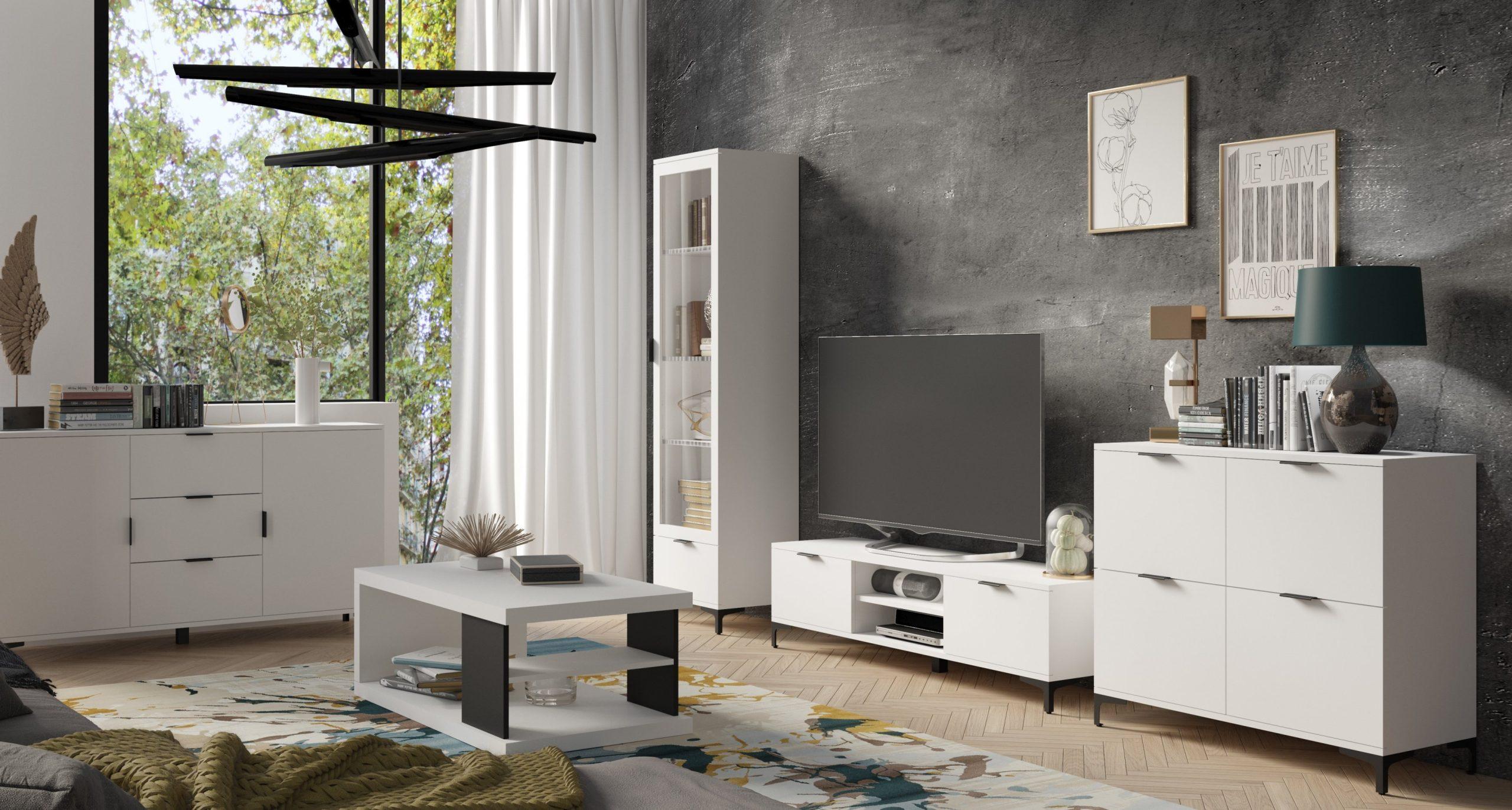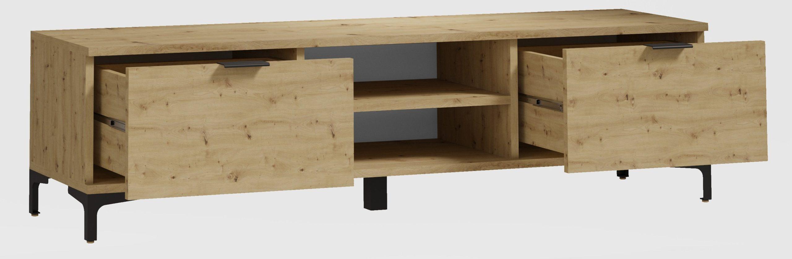 Barva: Artisan, belaDimenzije: 1500x400x400 mm komoda RTV Lenea LEN 05 bo vašemu bivalnemu prostoru dodala industrijski šarm. Stranska omarica je dovolj trdna in vzdržljiva za dolgotrajno uporabo. Kovinske noge zagotavljajo izjemno stabilnost. Ta trdna komoda ima 2 vrata in 2 odprta predelka, zato nudi veliko prostora za shranjevanje različnih stvari, da bodo lepo organizirane in na dosegu roke. Na trdno površino lahko položite tudi okrasne predmete in foto okvirje.