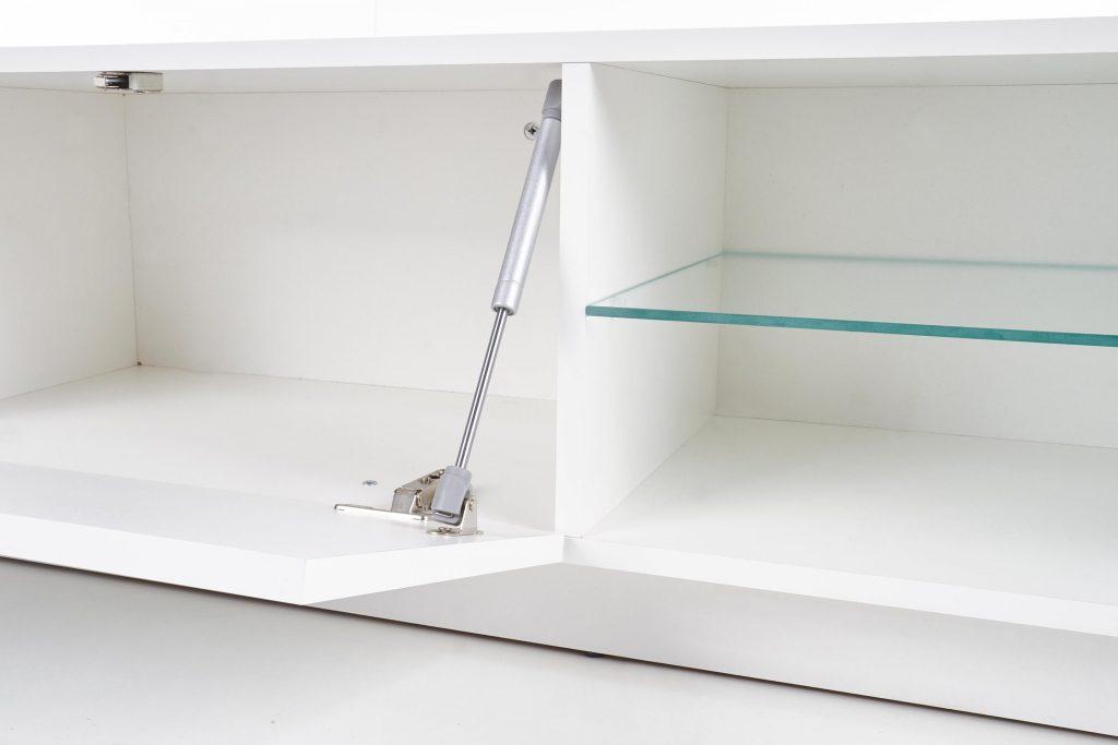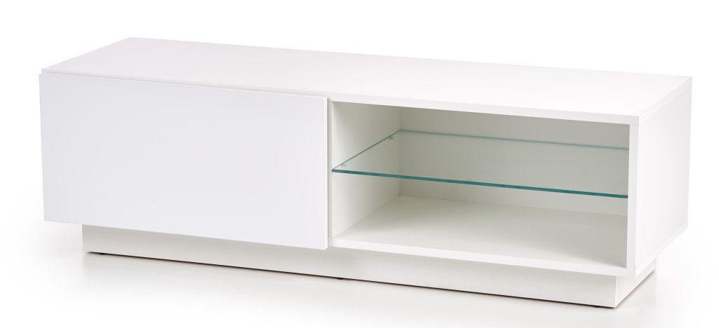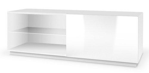 Barva: Bela visok sijaj Dimenzije: 1200x380x400 mm Zelo moderen regal iz lesa. Polici sta iz lesa. Vgrajen je tudi predal. | Material: Iveral in MDF in steklo