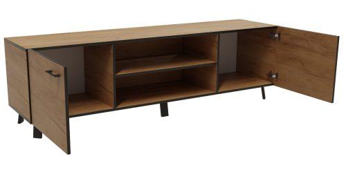 Nogice: kovinskeDimenzije: 1150x430x600 mm Kolekcija za dnevno sobo Lofton je izjemno premišljeno in moderno zasnovana. Črni zaključki v kombinaciji s hrastom Craft gold dajo kolekciji prav poseben čar in privlačnost. | Material: Iveral in MDF in steklo