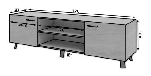 - 1x RTV omarica z 2 odprtima in 1 navadnim predalom na sredini. Dimenzije: 37x180x45 cm.