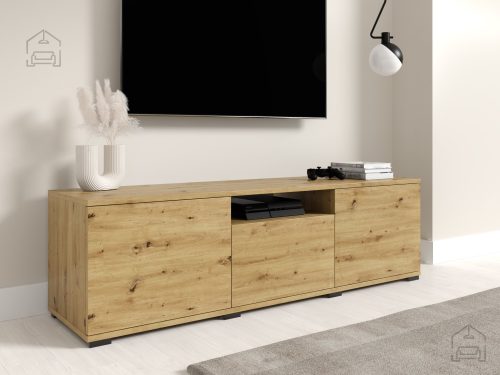 TV komoda Logan 150 cm se ponaša z elegantno estetiko, ki se brez težav zlije z različnimi stili notranje opreme. Barva artisan hrast prinaša toplino in naravni videz, ki bo vašemu dnevnemu prostoru dodal pridih elegance. Njene čiste linije in minimalističen dizajn so idealni za sodobna bivališča, hkrati pa se lahko prilagodi klasičnemu okolju, zaradi česar je vsestranska izbira za vsak dom.