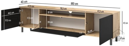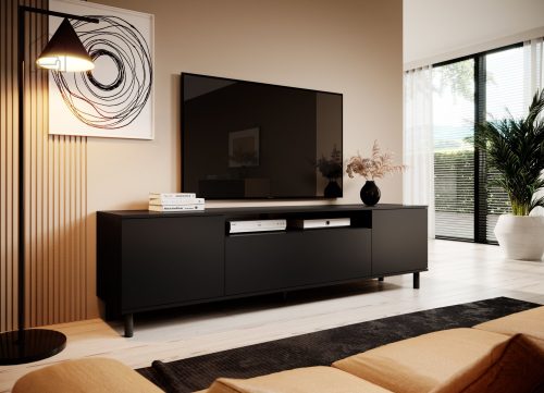 Barva: črnaDimenzije: 1800x540x400 mm Eleganca in Funkcionalnost v Vašem Dnevnem Prostor: TV komoda Logan 180 cm - črna