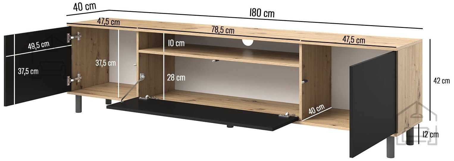 1. Sodobna Estetika: Črna barva TV komode Logan prinaša pridih modernosti in elegance v vsak prostor. Njena minimalistična oblika je idealna za tiste, ki ljubijo čist videz, ki ga je enostavno kombinirati z ostalim pohištvom in dekorjem. 2. Prostornost in Organizacija: Z dimenzijami 180x40x54 cm ta komoda nudi obilo prostora za vašo televizijo, igralne konzole, DVD predvajalnike ali druge elektronske naprave. Poleg tega ima dovolj prostora za shranjevanje revij, knjig in drugih dodatkov, ki jih želite imeti pri roki. 3. Kakovostni Materiali: Izdelana iz laminirane iverne plošče, je TV komoda Logan trpežna in enostavna za vzdrževanje. Laminirana površina ne le da daje čudovit sijaj in gladkost, ampak zagotavlja tudi odpornost na praske in razlitja, kar pomeni, da bo vaša komoda dolgo ohranila svoj prvotni videz. 4. Izdelano z Natančnostjo: Ta izdelek je izdelan v priznani tovarni PKMebel na Poljskem, ki je znana po svoji natančnosti in uporabi visokokakovostnih materialov. Vsaka TV komoda Logan je plod strokovnega znanja in inovativnega oblikovanja.