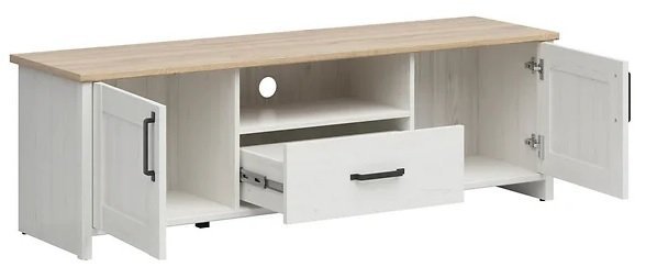 • 1x RTV omarica z 2 odprtima in 1 navadnim predalom na sredini. Dimenzije: 37x180x45 cm.