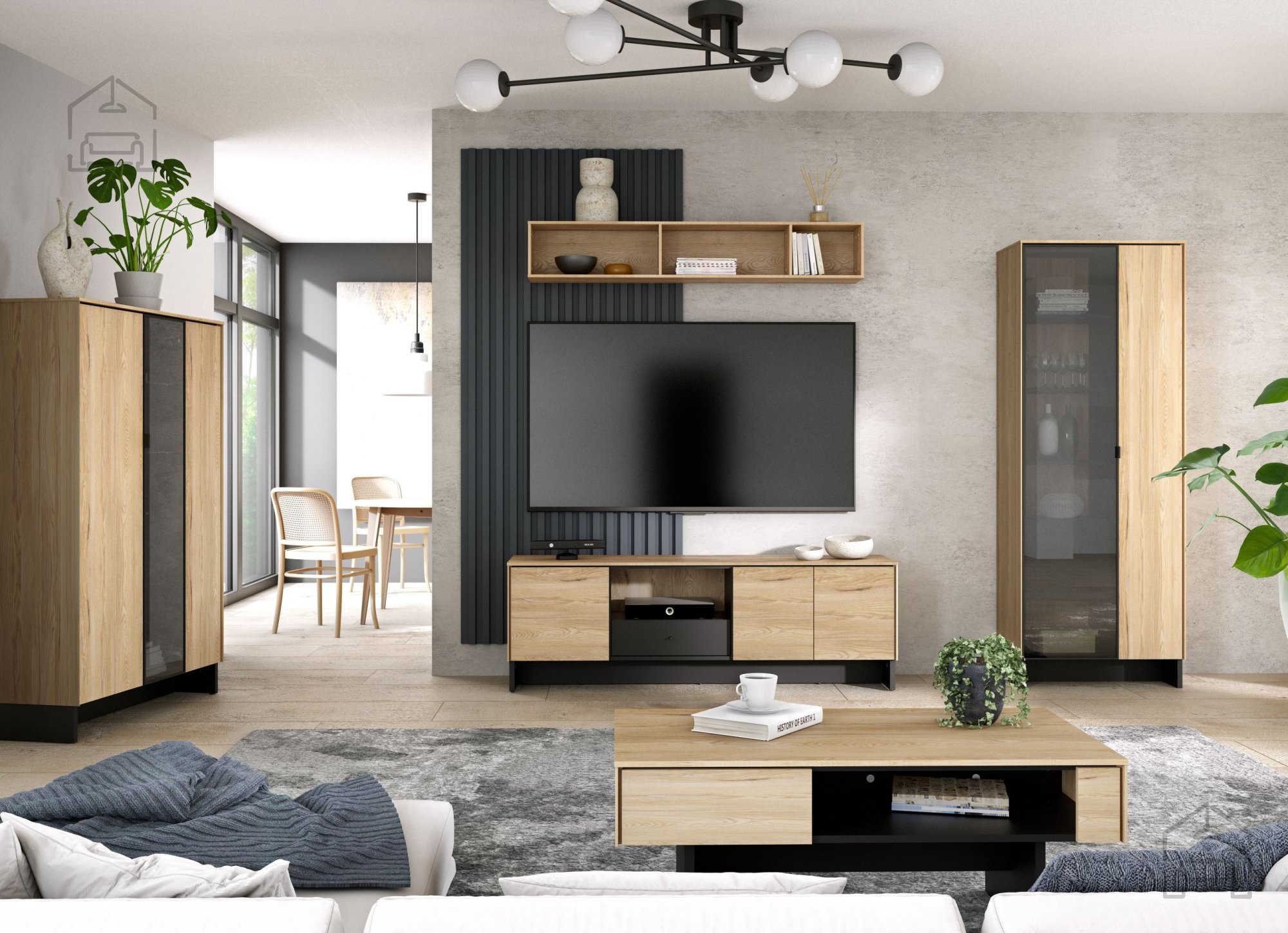 Izjemen vintage izgled, ki ga ustvari barva lefkas hrasta z rahlimi detajlnimi poudarki črne, bo oplemenitil prav vsako dnevno sobo. Dnevna soba Baltica – lefkas, za katero je poskrbel poljski proizvajalec notranjega pohištva ML Meble, je tako zelo priljubljen izbor uporabnikov naše spletne strani zaradi svojega mogočnega, robustnega, a elegantnega izgleda v enem. Še posebej bo do izraza prišla v večjih (tudi zaradi precejšnjega števila različnih elementov) in bolj svetlih dnevnih prostorih. V kolikor ocenjujete, da je barva lefkas hrasta (lefkas oak) za vaš dnevni prostor pretemna, lahko posežete po svetlejšem odtenku, in sicer boste to dnevno sobo našli v iskalniku pod imenom Dnevna soba Baltica.