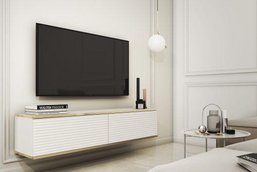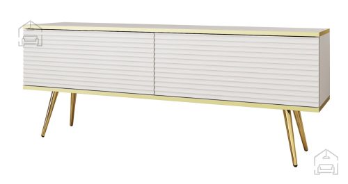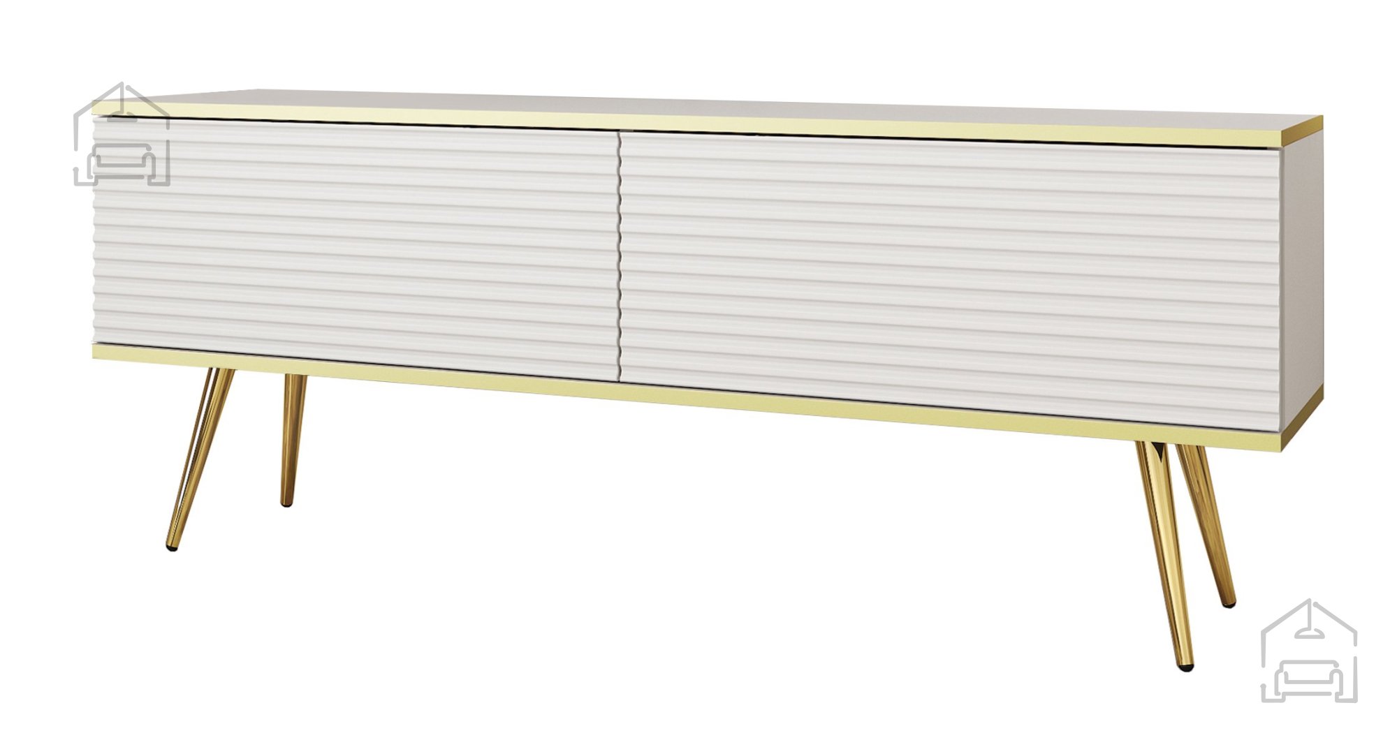 Kompaktna RTV komoda Oro RTV-135 MDF bo poskrbela za barvni pridih, ki bo popestril vaš domači dekor. Zaradi trdne konstrukcije je RTV komoda zelo vzdržljiva. Fronte komode ima horizontalne letvice (na voljo v štirih različnih barvah) ali gladke površine (na voljo v petih različnih barvah). Horizontalna oblika RTV komode je poudarjena z uporabo zlatih letvic.