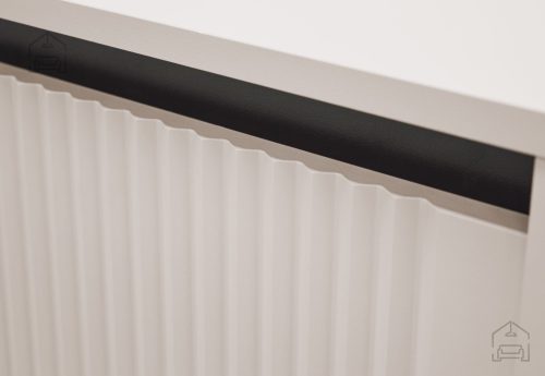 Robovi komode so obdelani s tehnologijo ABS, ki ne le izboljšuje estetski videz, temveč tudi povečuje odpornost na morebitne poškodbe. Kovinske ravne noge dolžine 15 cm, pobarvane v elegantno črno barvo, dopolnjujejo sodoben dizajn komode in dodajajo pridih elegance.
