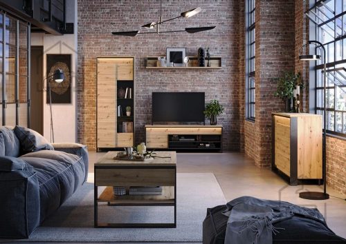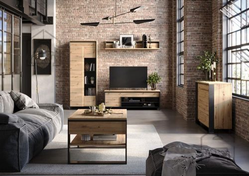 Omara Torin je prilagodljiva in jo lahko postavite samostojno ali v kombinaciji s TV omarico, visoko vitrino ali garderobno omaro. To vam omogoča, da ustvarite čudovito in funkcionalno ureditev dnevne sobe po svojih željah.