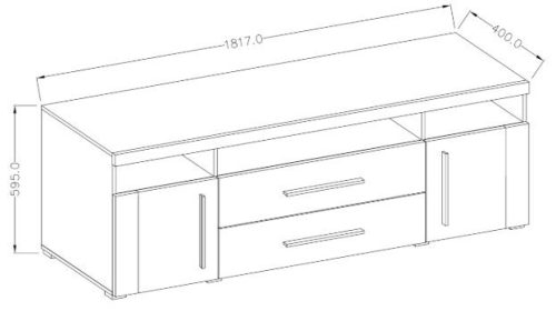 • 1x RTV omarica z 2 odprtima in 1 navadnim predalom na sredini. Dimenzije: 37x180x45 cm.