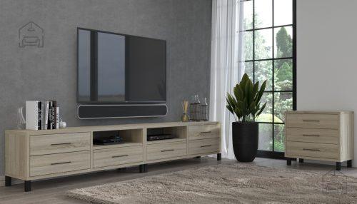Barva: Sonoma Light + MDF Sonoma TruffleDimenzije: 1380x520x430 mm Ko opremljamo dnevni prostor, se pogostokrat odločimo za tipske dnevne sobe. Pri Svetpohistva.si si prizadevamo, da bi si lahko vsak prostor prilagodili po svojih željah. In tako je tudi pri večini dnevnih sob. To v praksi pomeni, da si lahko sami odločate, katere elemente boste vključili v vašo dnevno sobo. Tako boste lahko najbolje izkoristili prostor, vemo namreč, da so specifike prostora vselej unikatne in različne.