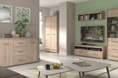 Omara Torin je prilagodljiva in jo lahko postavite samostojno ali v kombinaciji s TV omarico, visoko vitrino ali garderobno omaro. To vam omogoča, da ustvarite čudovito in funkcionalno ureditev dnevne sobe po svojih željah.