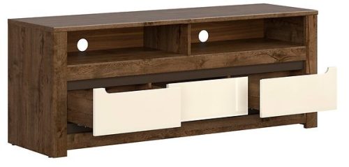 TV omara je opremljena s tremi prostornimi predali, ki vam omogočajo organizirano shranjevanje stvari. Poleg tega so dve luknji v zadnji steni omarice, ki omogočajo kroženje zraka okoli elektronske opreme, kar pomaga preprečevati pregrevanje.