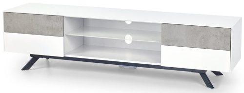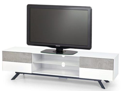 Udobna RTV komoda Stonno z dvema odprtima omaricama v sredinskem delu in dvema omaricama z vrati na vsaki strani.