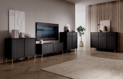 Dimenzije: 1206x500x408 mm Dodajte stil in funkcionalnost svoji dnevni sobi z našo elegantno TV omarico Tili, ki je na voljo v treh edinstvenih barvah: peščeno bež, evkaliptusova in črna. Vsak od teh odtenkov je bil skrbno izbran, da se popolnoma ujema z različnimi notranjimi ureditvami, od modernih do klasičnih. Izberite TV omarico Tili v barvi, ki najbolj ustreza vašim željam in ustvarite prostor, poln stila in udobja. Je popoln kos pohištva, ki združuje estetiko in praktičnost. | Material: Iveral in MDF