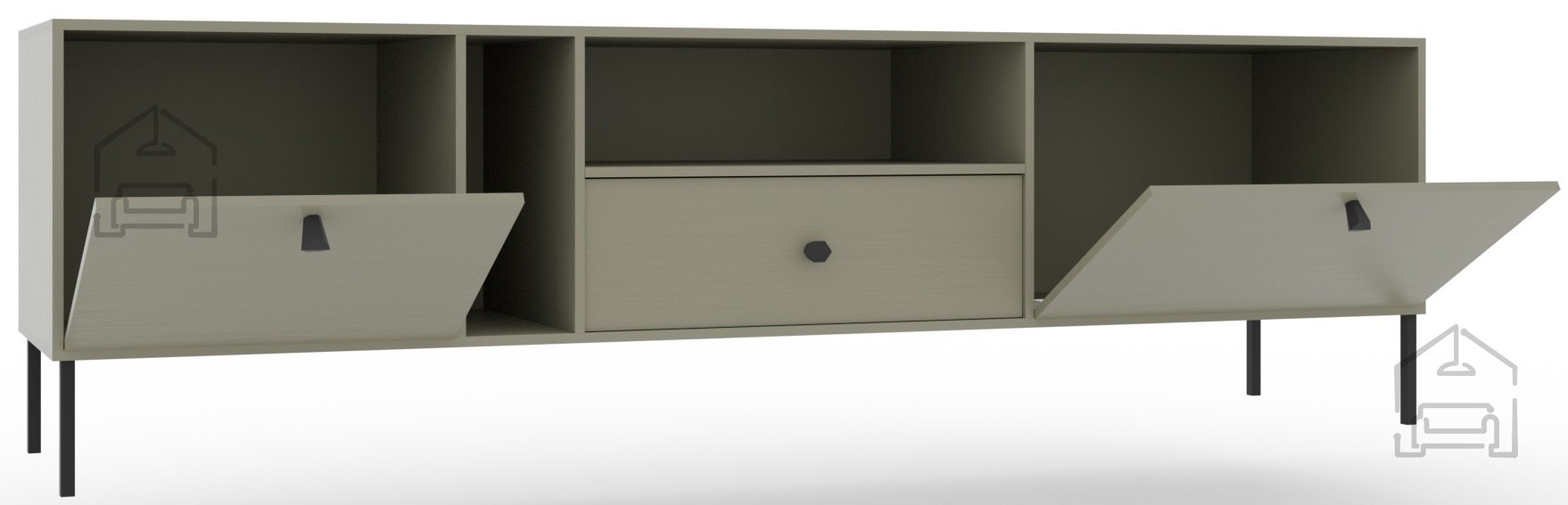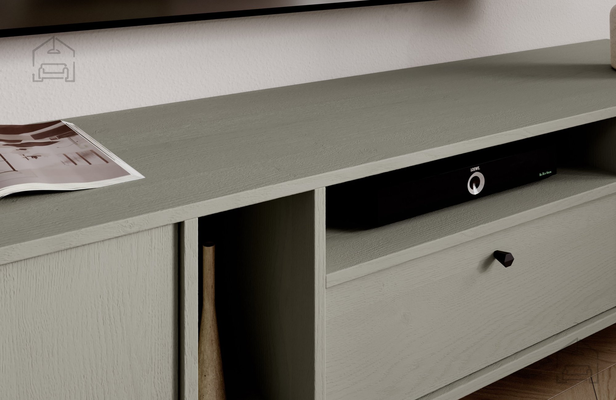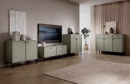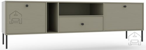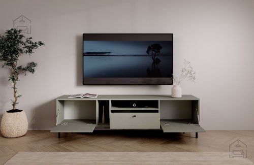 Barva: evkaliptusDimenzije: 1800x500x408 mm Dodajte stil in funkcionalnost svoji dnevni sobi z našo elegantno TV omarico Tili, ki je na voljo v treh edinstvenih barvah: peščeno bež, evkaliptusova in črna. Vsak od teh odtenkov je bil skrbno izbran, da se popolnoma ujema z različnimi notranjimi ureditvami, od modernih do klasičnih. Izberite TV omarico Tili v barvi, ki najbolj ustreza vašim željam in ustvarite prostor, poln stila in udobja. Je popoln kos pohištva, ki združuje estetiko in praktičnost. | Material: Iveral in MDF