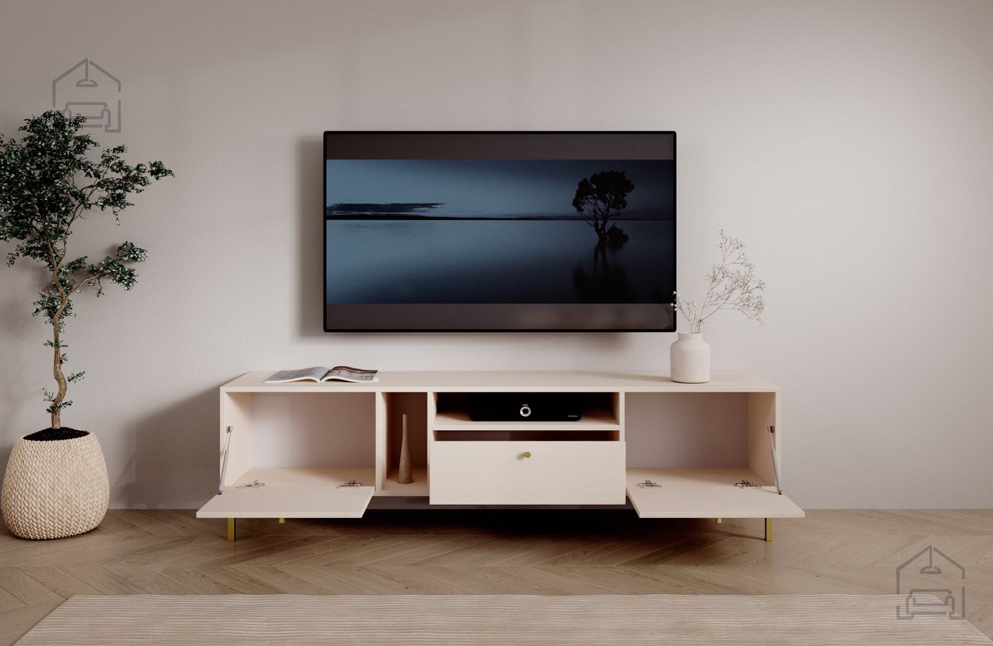 Dodajte stil in funkcionalnost svoji dnevni sobi z našo elegantno TV omarico Tili, ki je na voljo v treh edinstvenih barvah: peščeno bež, evkaliptusova in črna. Vsak od teh odtenkov je bil skrbno izbran, da se popolnoma ujema z različnimi notranjimi ureditvami, od modernih do klasičnih. Izberite TV omarico Tili v barvi, ki najbolj ustreza vašim željam in ustvarite prostor, poln stila in udobja. Je popoln kos pohištva, ki združuje estetiko in praktičnost.