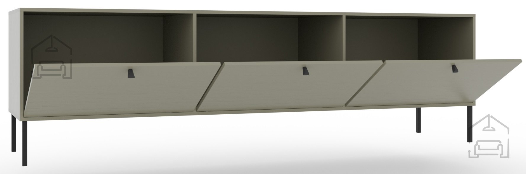 • 1x RTV omarica z 2 odprtima in 1 navadnim predalom na sredini. Dimenzije: 37x180x45 cm.