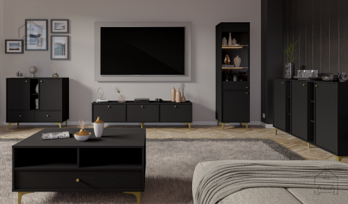 Omara Torin je prilagodljiva in jo lahko postavite samostojno ali v kombinaciji s TV omarico, visoko vitrino ali garderobno omaro. To vam omogoča, da ustvarite čudovito in funkcionalno ureditev dnevne sobe po svojih željah.