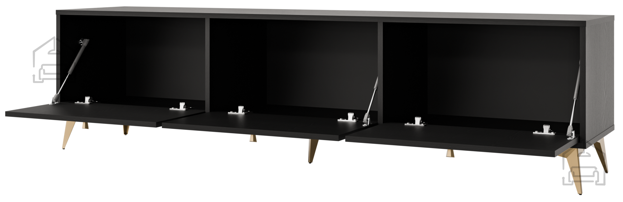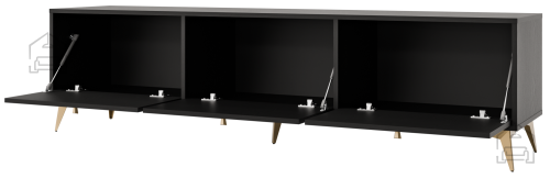Dimenzije: 1800x485x408 mm TV komoda Tokyo 1 - 303 je opremljena s tremi loputami, ki omogočajo enostaven dostop do notranjih prostorov za shranjevanje. To omogoča organizirano shranjevanje AV opreme, DVD-jev, knjig in drugih predmetov. Oblikovana v modernem stilu pohištva, kar pomeni čiste linije in minimalističen dizajn, primeren za sodobne notranje prostore.