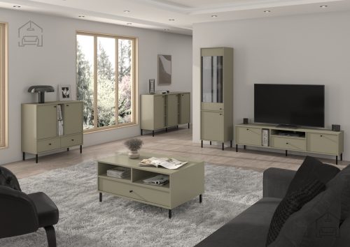 Omara Torin je prilagodljiva in jo lahko postavite samostojno ali v kombinaciji s TV omarico, visoko vitrino ali garderobno omaro. To vam omogoča, da ustvarite čudovito in funkcionalno ureditev dnevne sobe po svojih željah.