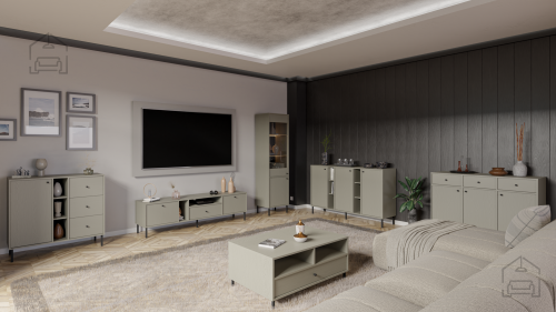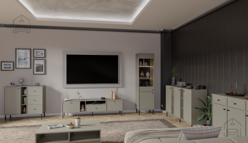• Omara Torin je prilagodljiva in jo lahko postavite samostojno ali v kombinaciji s TV omarico, visoko vitrino ali garderobno omaro. To vam omogoča, da ustvarite čudovito in funkcionalno ureditev dnevne sobe po svojih željah.