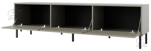 TV komoda Tokyo 2 - 303 je opremljena s tremi loputami, ki omogočajo enostaven dostop do notranjih prostorov za shranjevanje. To omogoča organizirano shranjevanje AV opreme, DVD-jev, knjig in drugih predmetov. Oblikovana v modernem stilu pohištva, kar pomeni čiste linije in minimalističen dizajn, primeren za sodobne notranje prostore.