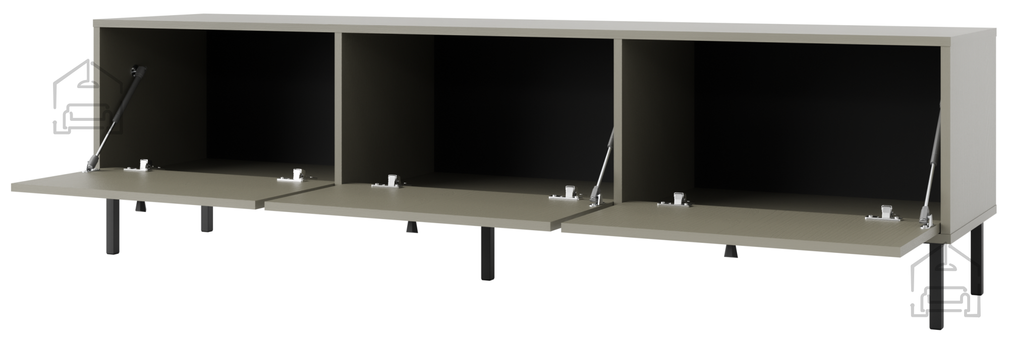 TV komoda Tokyo 2 – 303 je opremljena s tremi loputami, ki omogočajo enostaven dostop do notranjih prostorov za shranjevanje. To omogoča organizirano shranjevanje AV opreme, DVD-jev, knjig in drugih predmetov. Oblikovana v modernem stilu pohištva, kar pomeni čiste linije in minimalističen dizajn, primeren za sodobne notranje prostore.