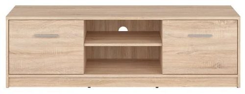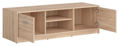 • TV omarica vključuje dve vrati, ki skrivata notranje prostore za shranjevanje, in dva odprta predala, ki so primerni za druge medijske naprave ali dekorativne predmete.