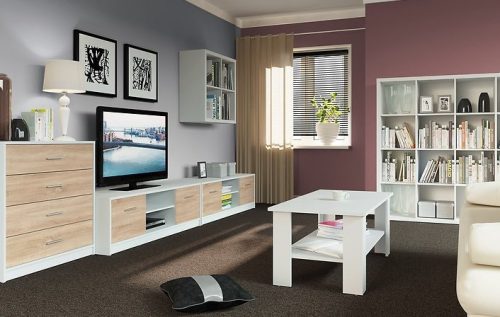 Izjemen vintage izgled, ki ga ustvari barva lefkas hrasta z rahlimi detajlnimi poudarki črne, bo oplemenitil prav vsako dnevno sobo. Dnevna soba Baltica – lefkas, za katero je poskrbel poljski proizvajalec notranjega pohištva ML Meble, je tako zelo priljubljen izbor uporabnikov naše spletne strani zaradi svojega mogočnega, robustnega, a elegantnega izgleda v enem. Še posebej bo do izraza prišla v večjih (tudi zaradi precejšnjega števila različnih elementov) in bolj svetlih dnevnih prostorih. V kolikor ocenjujete, da je barva lefkas hrasta (lefkas oak) za vaš dnevni prostor pretemna, lahko posežete po svetlejšem odtenku, in sicer boste to dnevno sobo našli v iskalniku pod imenom Dnevna soba Baltica.