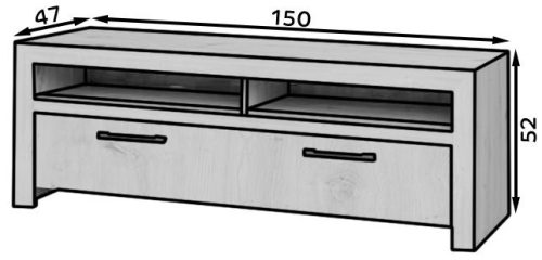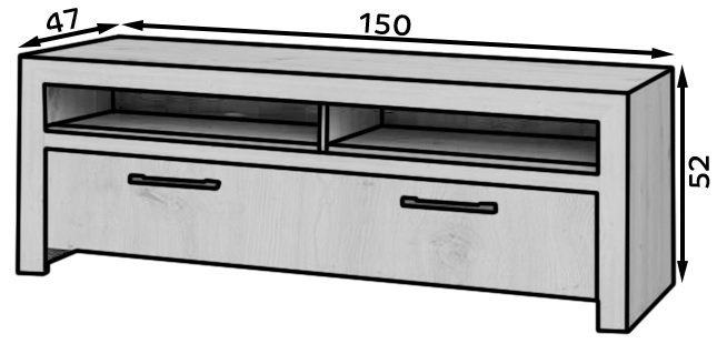 Garancija: 2 letiDimenzije: 1500x520x470 mm TV omara Janez odlikuje preprosta in moderna oblika, ki se brez težav vklopi v različne stilne zasnove. Njena eleganca in funkcionalnost bosta navdušila tako ljubitelje klasičnega kot sodobnega oblikovanja. Z dimenzijami 150x47x52 cm ponuja dovolj prostora za vašo televizijo ter dodatno opremo, kot so igralne konzole, DVD predvajalniki ali knjige.