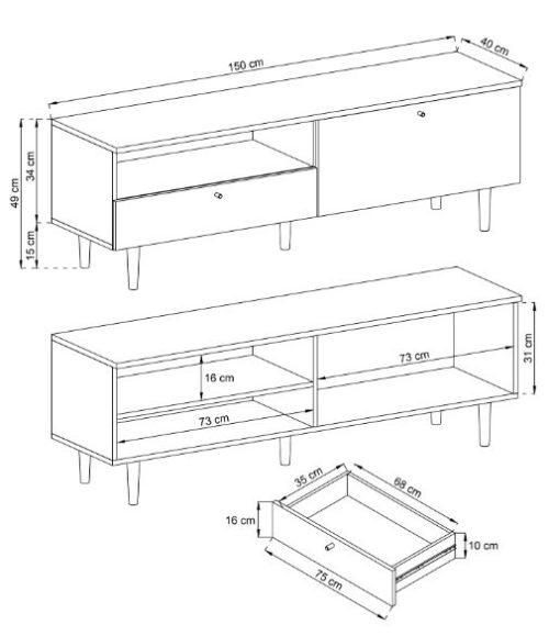 Dimenzije: 1500x490x400 mm ABS robovi ABS rob ali nalimek se od klasičnega melaminskega robu razlikuje v mnogih stvareh. Najhitreje ga ločimo od melaminskega robu po njegovi debelini. Klasičen melaminski rob je največkrat debeline le 0,3 mm, ABS rob je pa kar 2 mm. Prav debelina robu je tista, ki bistveno poveča obstojnost izdelka ter uporabno vrednost končnega produkta. Bistvena prednost ABS robu je v tem da so vogali nežno zaokroženi in ne ostri kot z uporabo melaminskega robu. Zato so izdelki izdelani z uporabo ABS robov mnogo bolj prijazni za uporabnika saj ne malokrat preprečijo poškodbe oblačil in samih uporabnikov. | Material: Pohištvena plošča